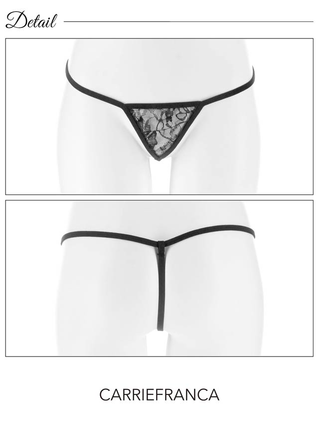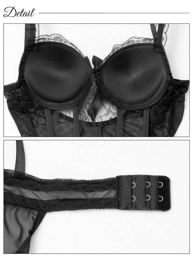 レースの透け感で色っぽさを演出しつつ、軽やかなフリルとリボンが甘さを添えます。