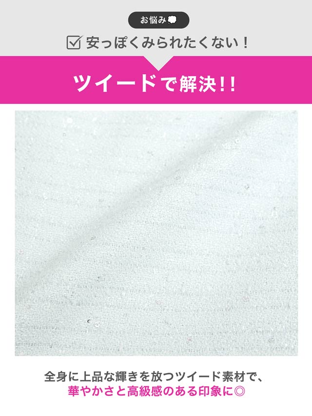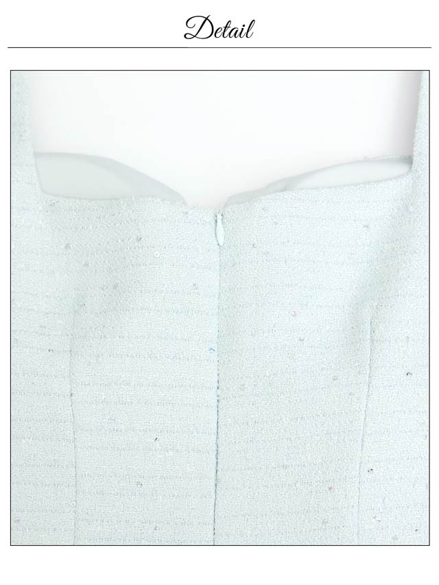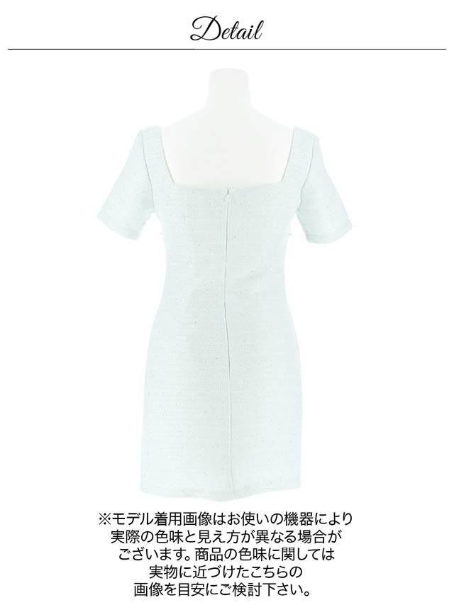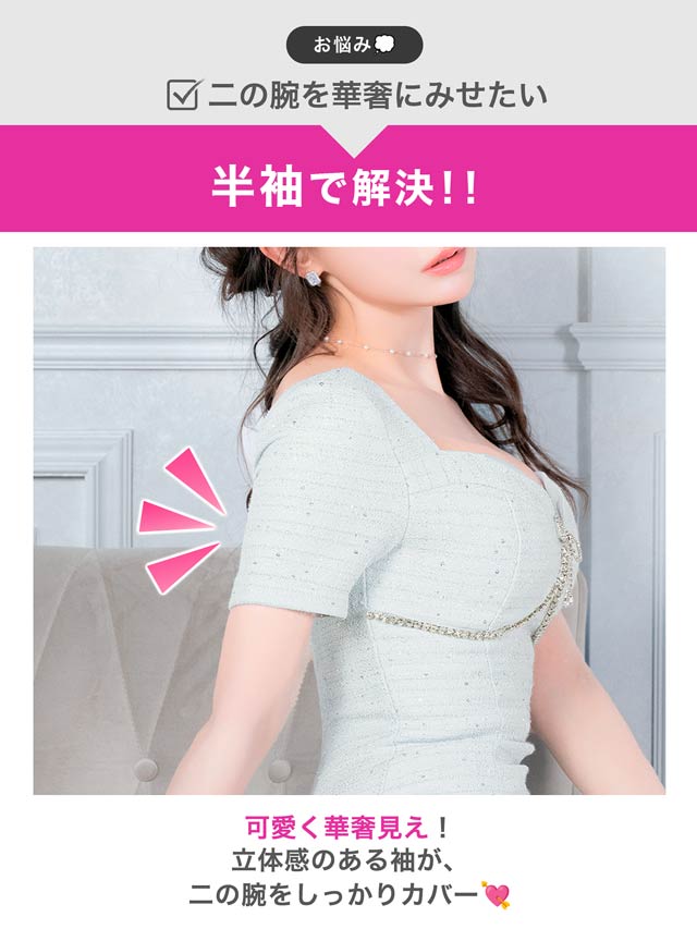 きらめくビジューをあしらったツイード生地が、高級感を演出する大人可愛いキャバドレス。バストラインを囲うビジューデザインが胸元を華やかに見せ視線を惹きつけます♪半袖デザインで気になる二の腕をさりげなくカバーしてくれるのも嬉しいポイントです!