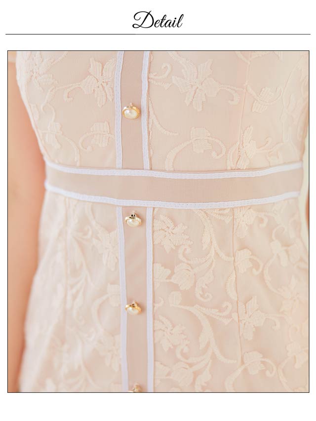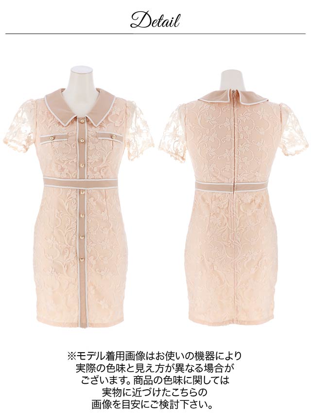 ボタニカルモチーフのジャガード刺繍が高級感漂うミニドレス。上品な襟付き仕様や、パールビジューで女性らしさをアピール◎ 半袖でさり気なく二の腕カバーも出来ちゃう1着です♪