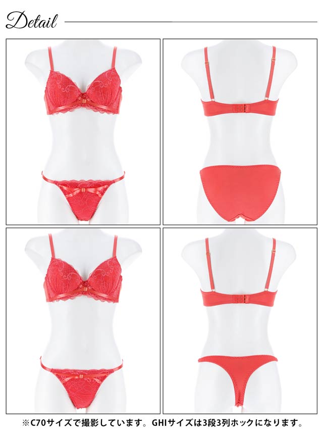 4/20新作!【3点セット】【GHIサイズ】リボンクロスレーシィブラジャー&フルバック&Tバックショーツ[推し]