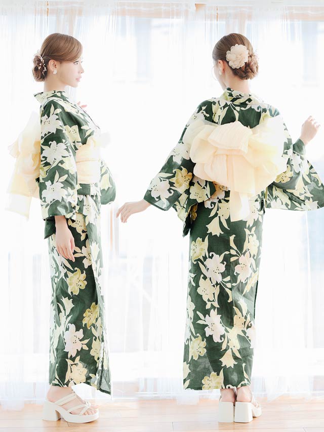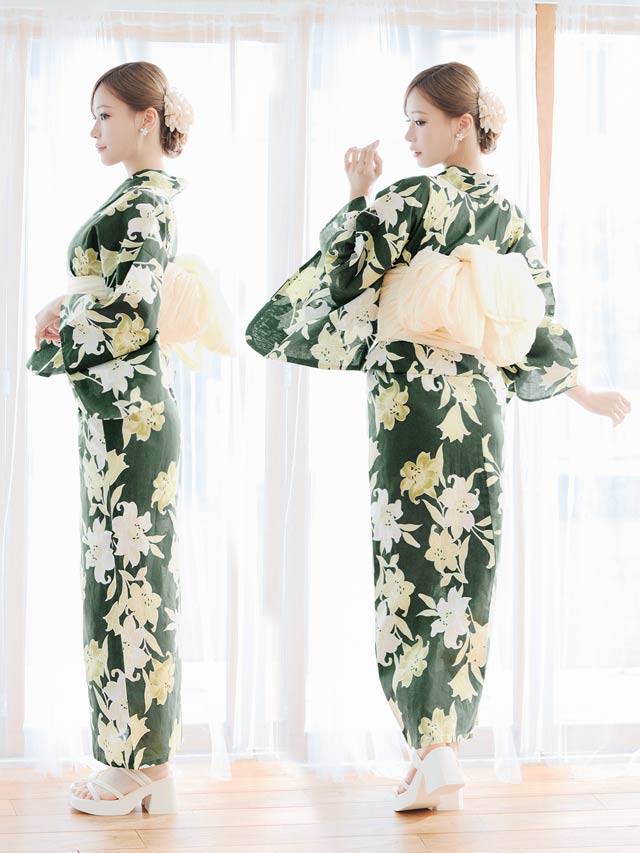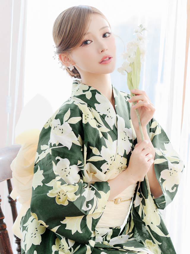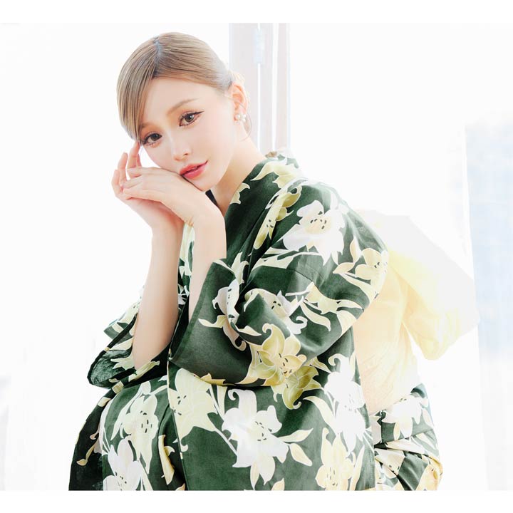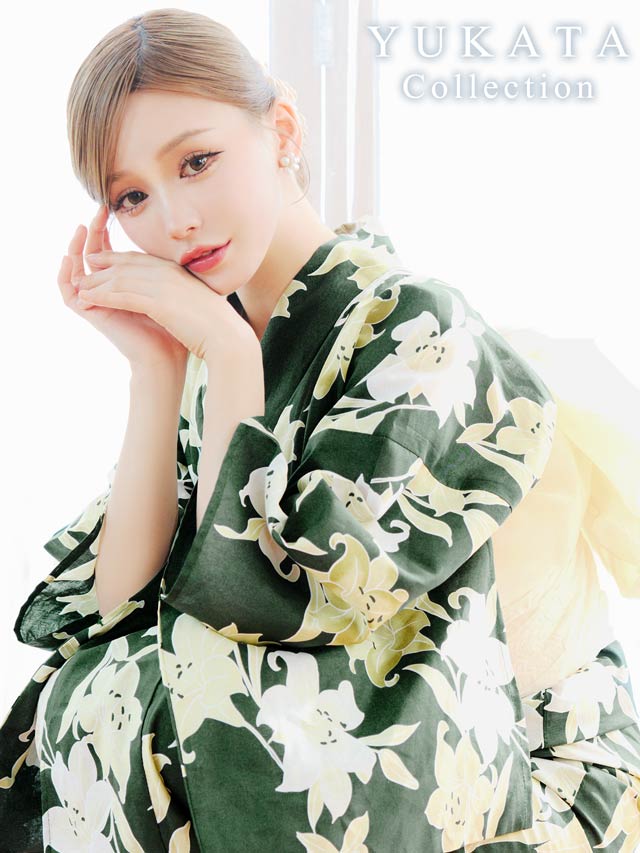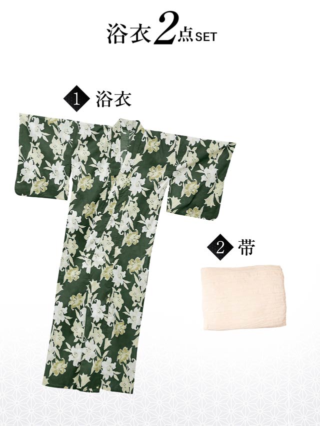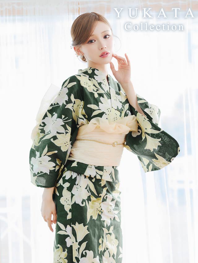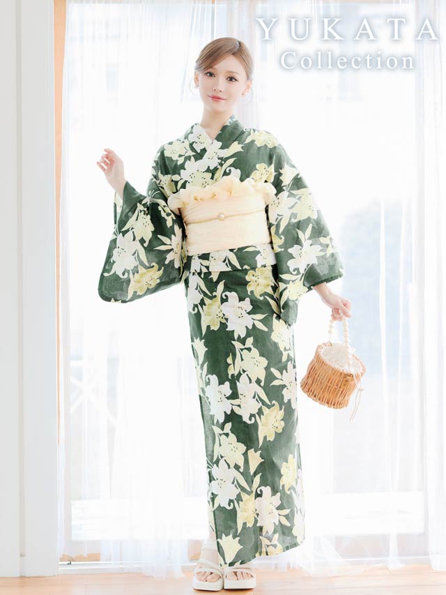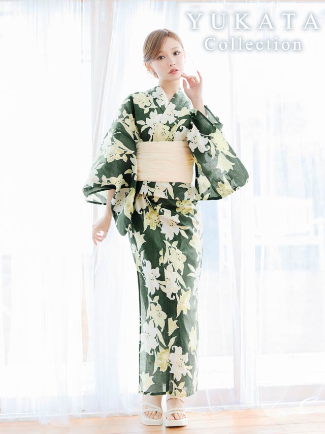 4/23新作![2点SET]緑地×ユリ柄浴衣【2026年新作/YUKATA by dazzy】