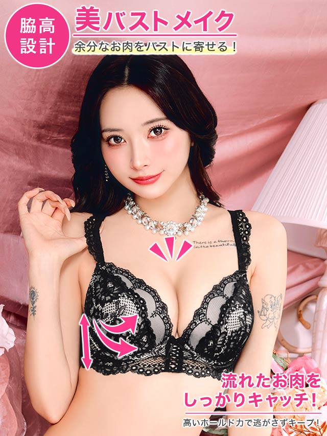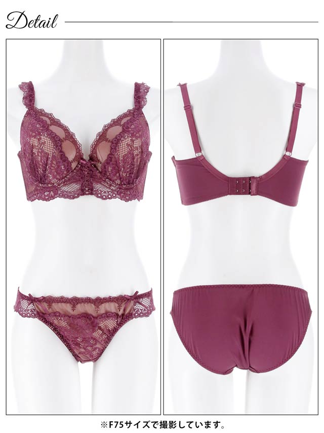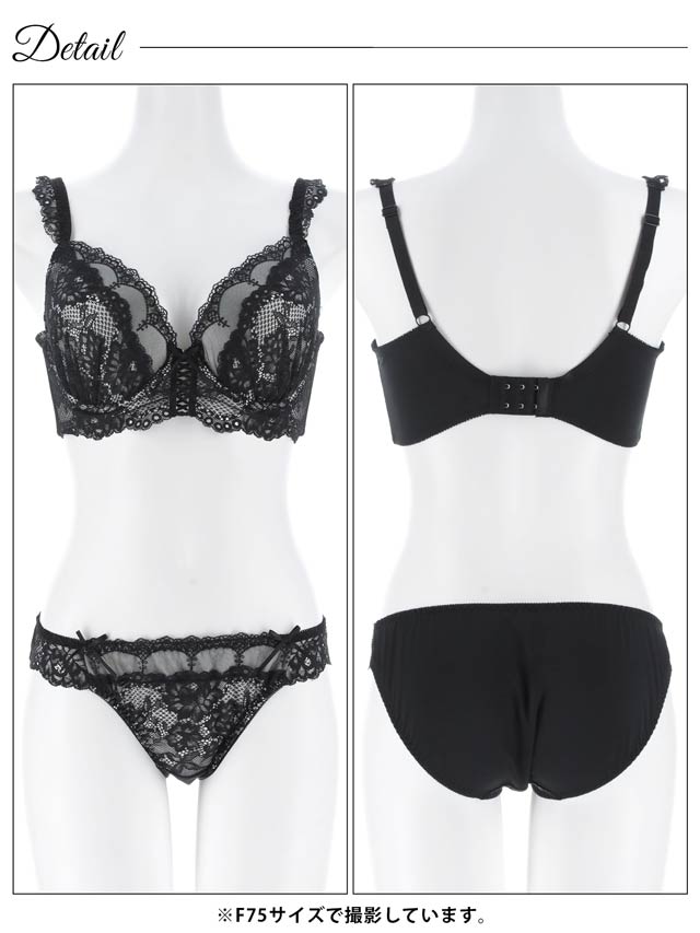 4/24新作!【EFサイズ】ビターレースアップ育乳脇高ブラジャー&フルバックショーツ[推し]