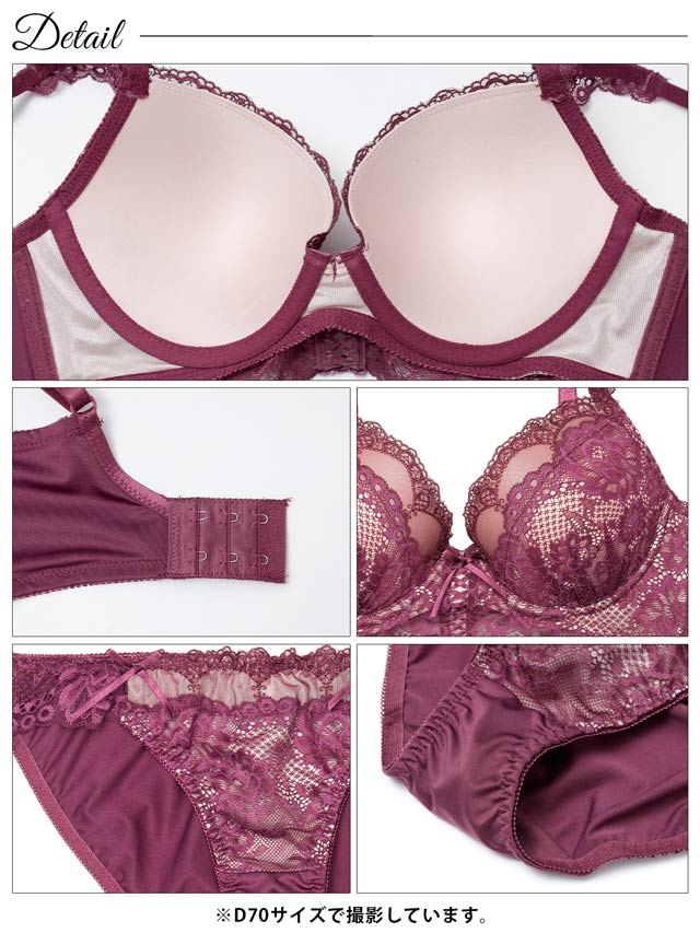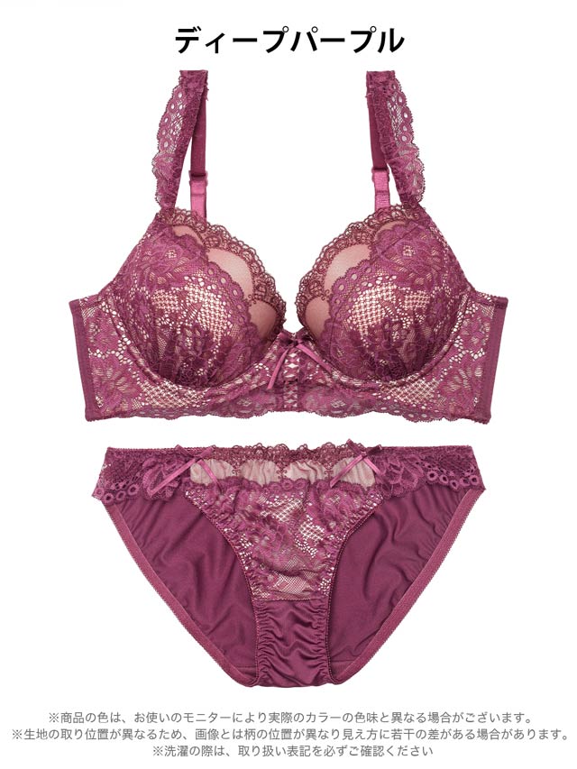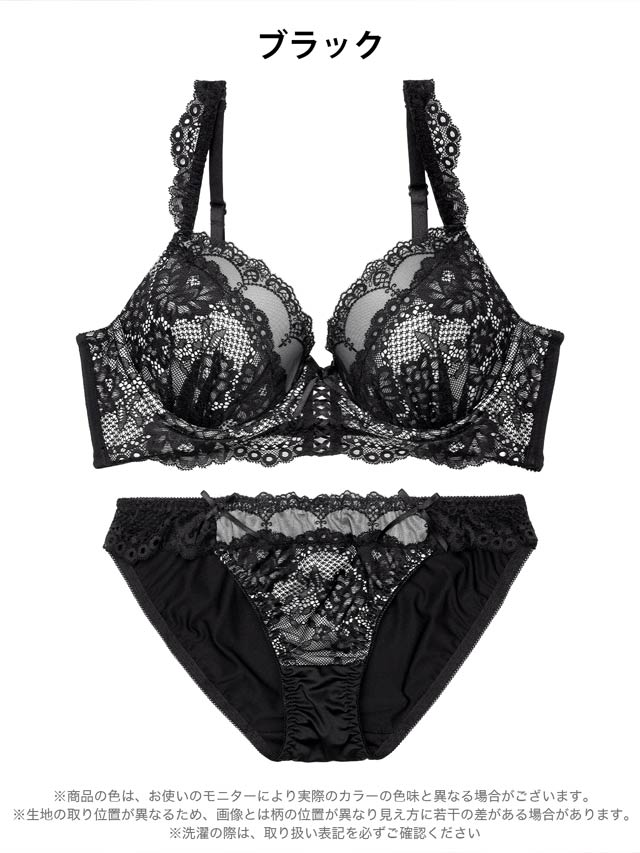 "[ブラジャー] 3/4カップ(モールドカップ)/ワイヤー:有(U字)/ホック:バック2段3列 [パッド] 内蔵パッド:有/付属パッド:無し [ストラップ] 取り外し:不可(調節可)/部品;金属(コーティング:有)/ストラップ幅:EF15mm幅 [ショーツ] フルバック/クロッチ当て布:有/股上:普通/伸縮性:有 "