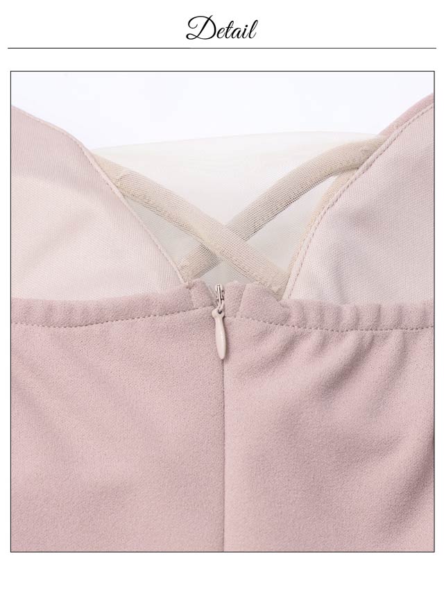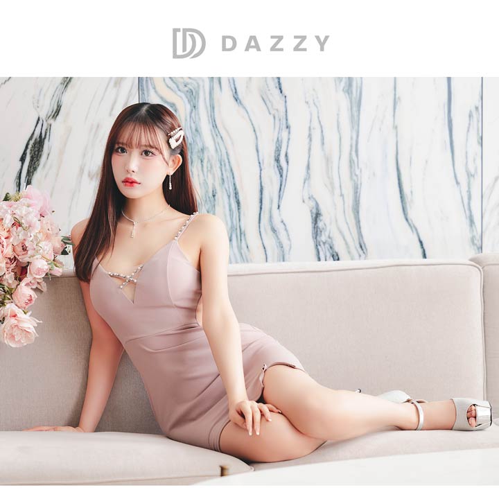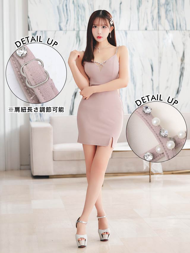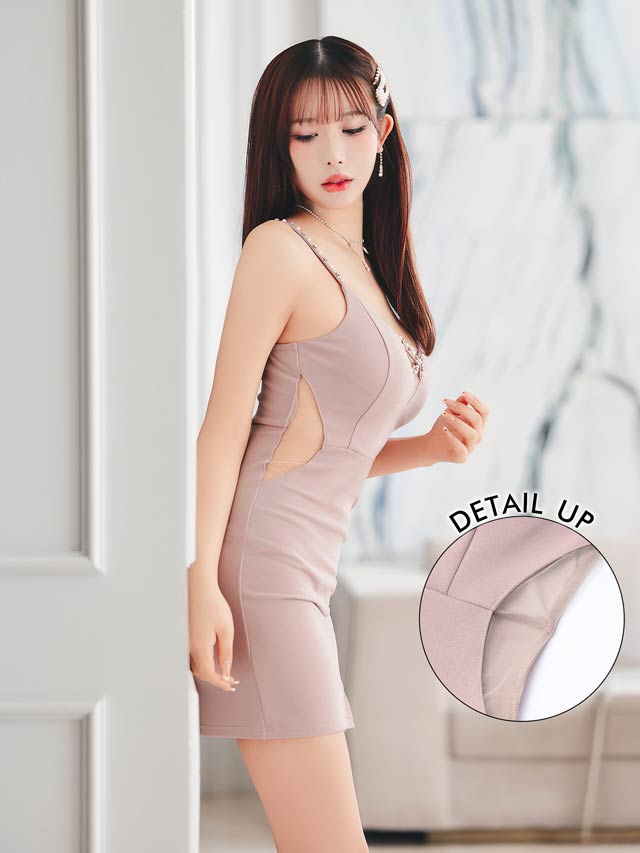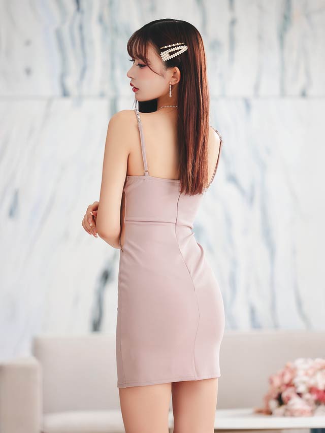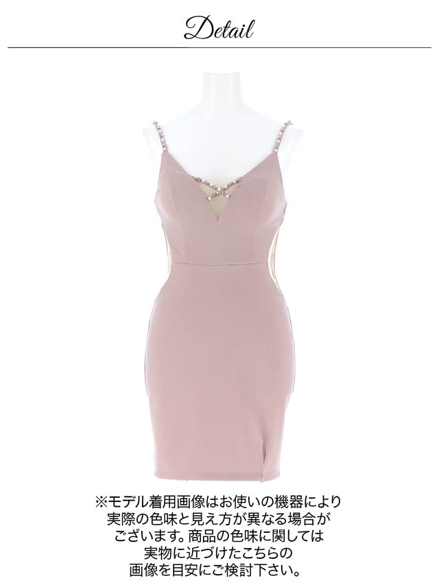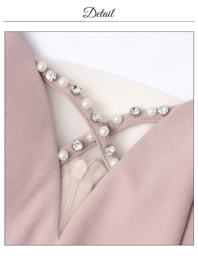パールビジューの装飾が輝きを添える上品セクシーなキャバドレス。深めのVカットにクロスデザインを重ね、谷間を色っぽく透け見せしながら視線を惹きつけます♪ウエストのシアーカットがくびれを強調し、女性らしいメリハリのあるシルエットを演出する一着です◎