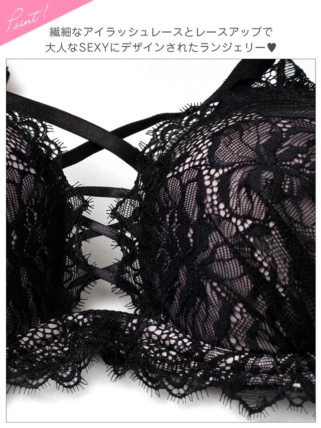 4/29新作!【Tバック】センシュアルレースアップ育乳脇高ブラジャー&Tバックショーツ[推し][人気]