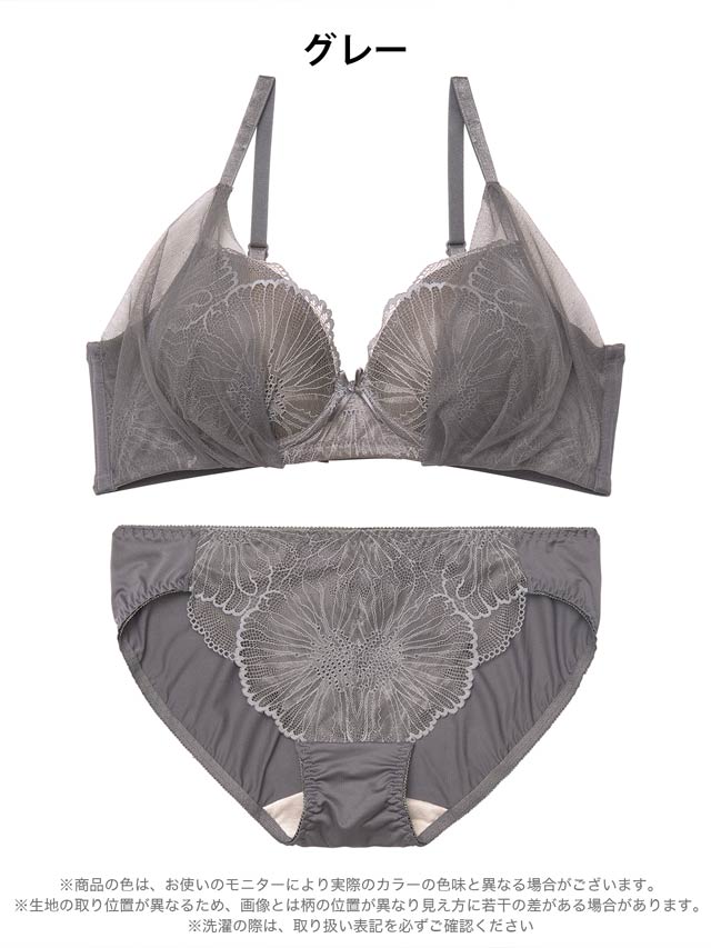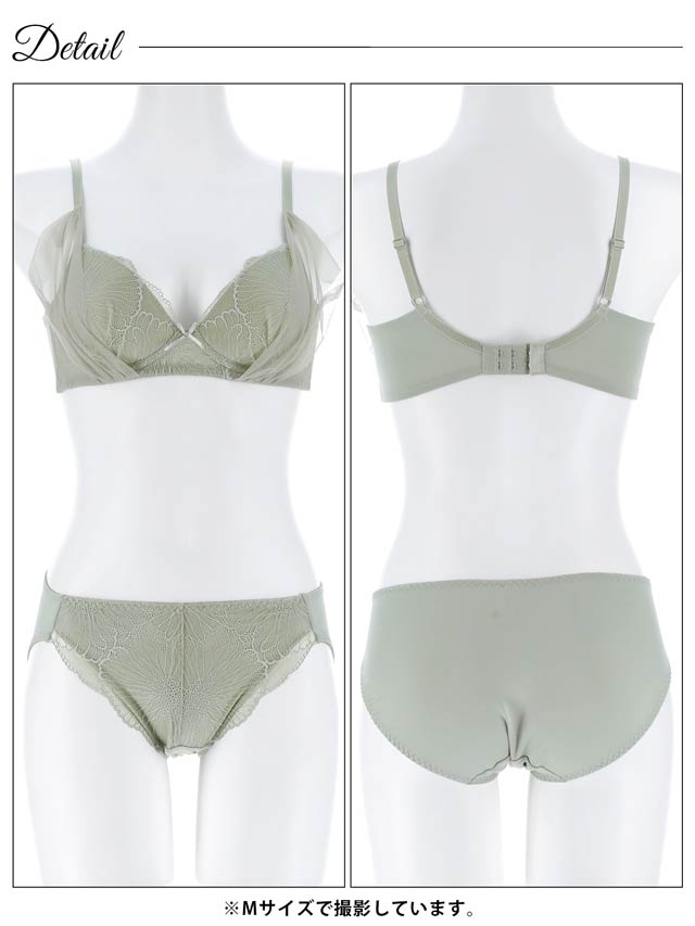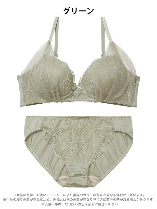 4/3新作!【ノンワイヤー】カームフラワーレースブラジャー&フルバックショーツ[推し]
