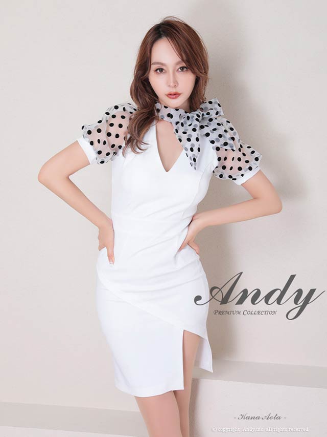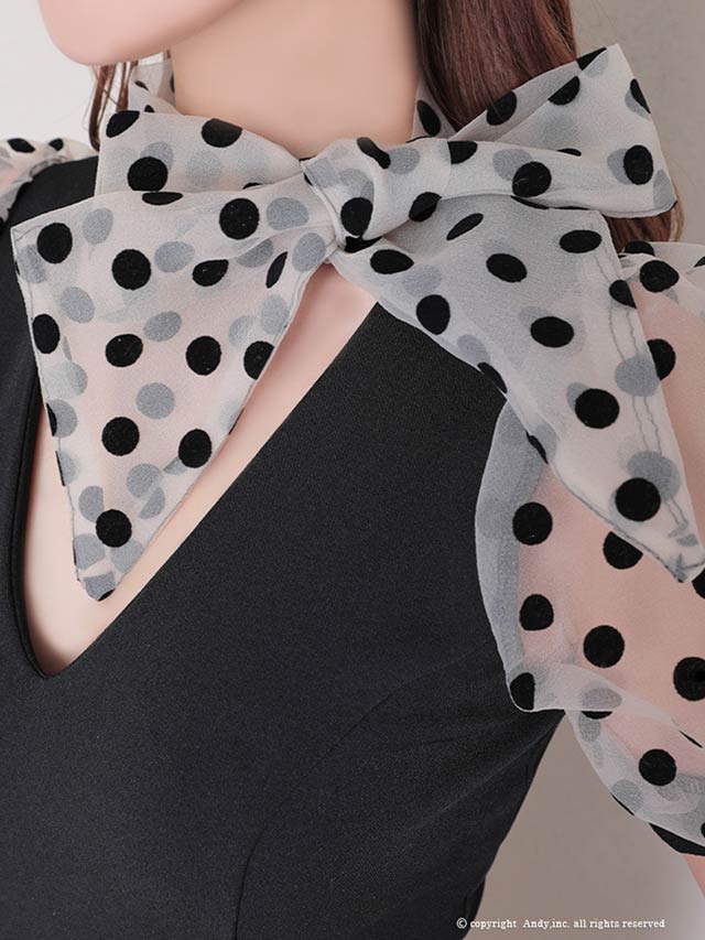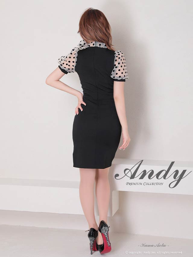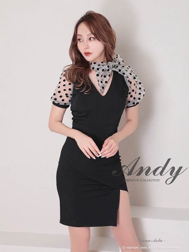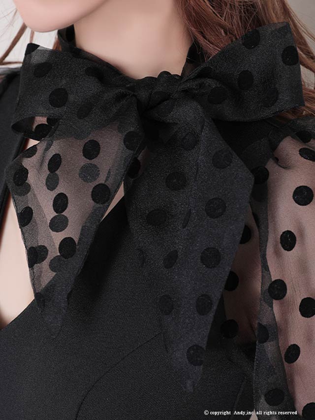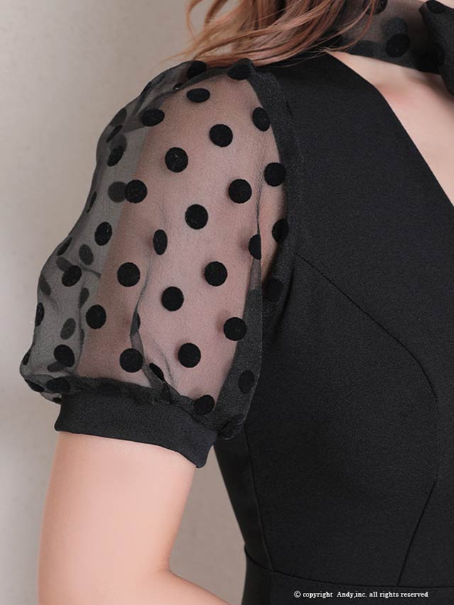 4/9新作!【今だけポイント20倍】[Andy]ネックリボンドットシアーパフスリーブタイトミニ丈キャバドレス[AN-OK2727]