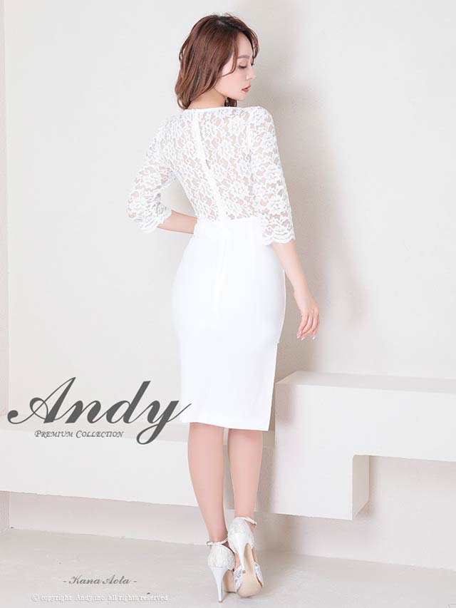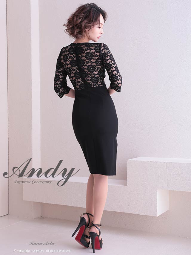 4/9新作!【今だけポイント20倍】[Andy]フラワーレースウエストシアー七分袖スリットタイト膝丈キャバドレス[AN-ON2716]