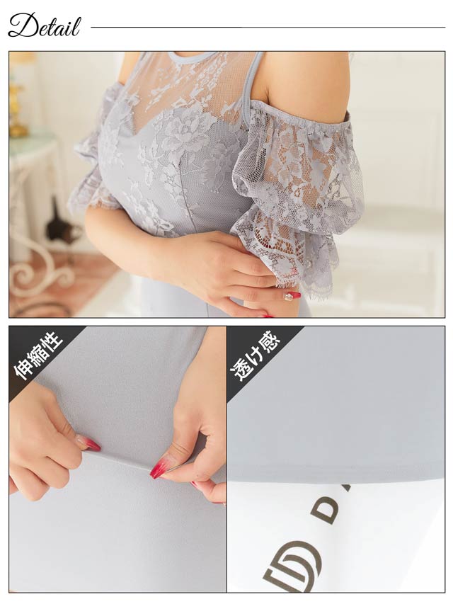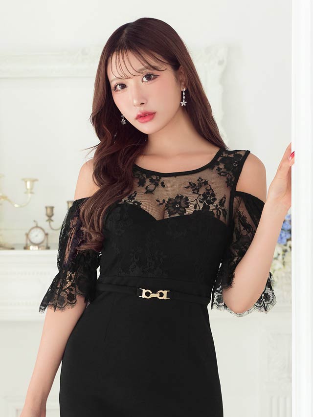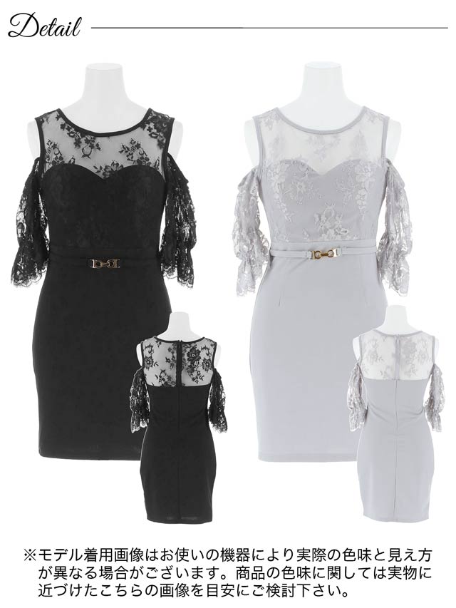 上品なフラワーレース越しに透けるデコルテが色気漂うミニドレス。オープンショルダー仕様でトレンドライクな肩魅せが出来ちゃいます◎ ウエストにはベルトモチーフをあしらいスッキリとしたスタイルが叶う1着です。