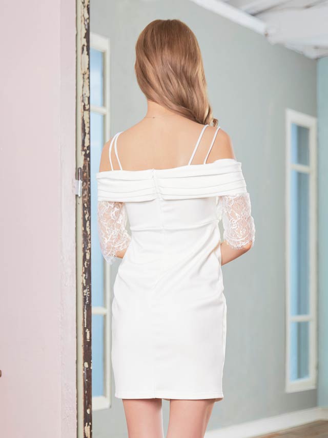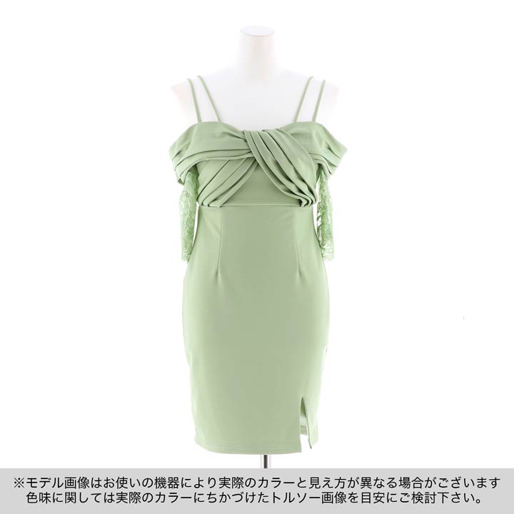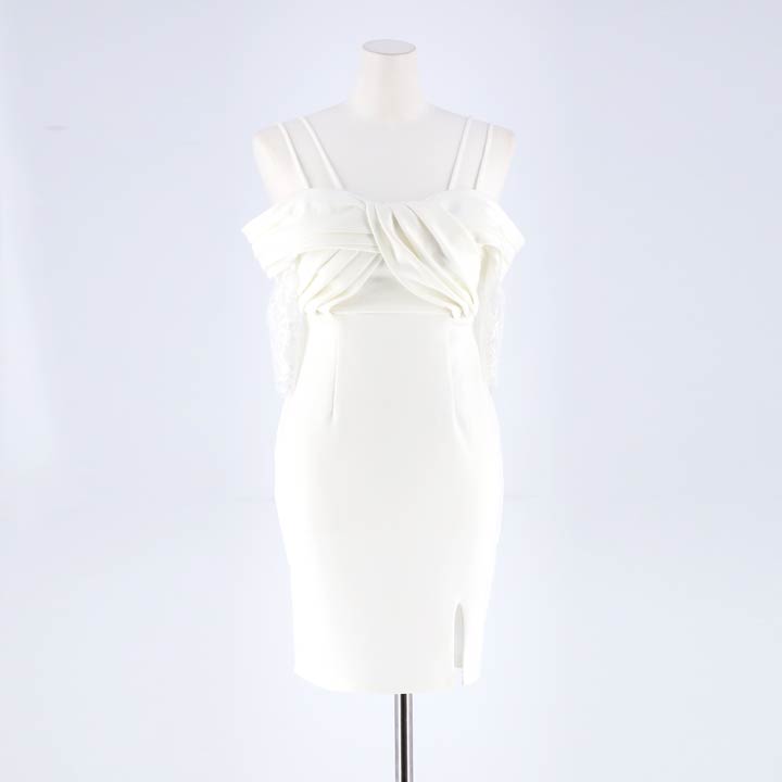 バストアップ効果にもなるフロントのねじれデザインがポイントのミニドレス。ハイウエスト位置の切り替えでスタイルUP◎女性らしいデコルテラインを演出するオフショルデザインで華奢見せ効果もばっちりです♪