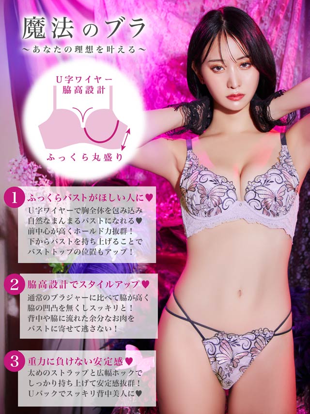 7/14新作!【Tバック】【Reinest】【永尾まりや着用】エレガンスパピヨンフルール育乳★魔法のブラジャー&バック透けTバックショーツ[推し]