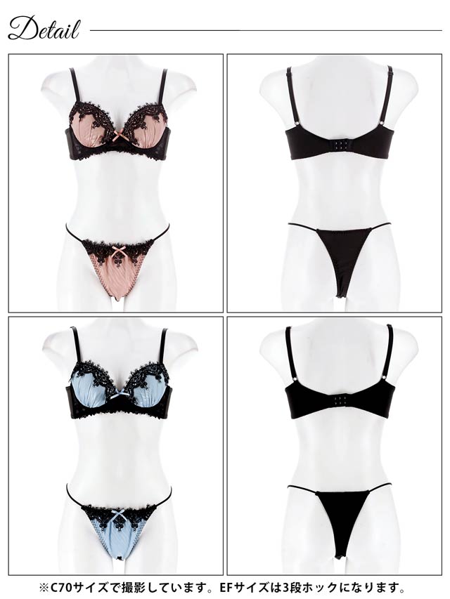 7/18新作!【EFサイズ】【Tバック】ゴシックケミカルレース育乳ブラジャー&Tバックショーツ[推し]