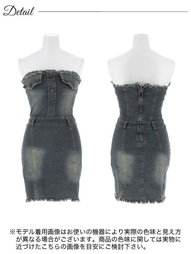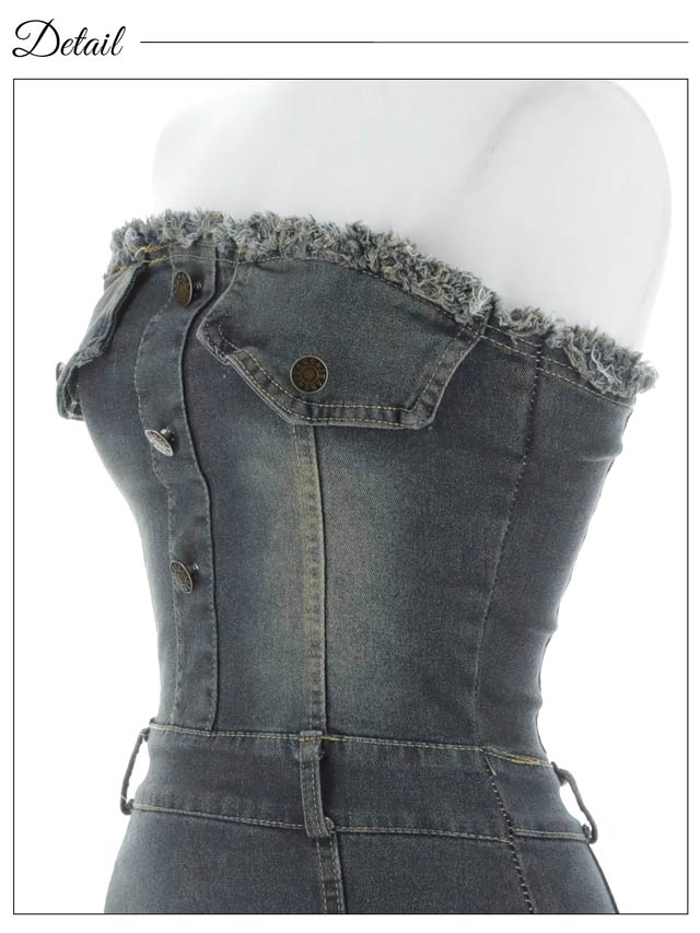 ヘルシーな肌見せを叶える大胆なベアトップデザインが魅力のデニムワンピース。ヴィンテージ感のあるウォッシュ加工や裾のフリンジがこなれ感を演出します♪ベルトを合わせてアレンジも楽しめます。1枚で着映えする、これからの季節にぴったりのアイテムです!