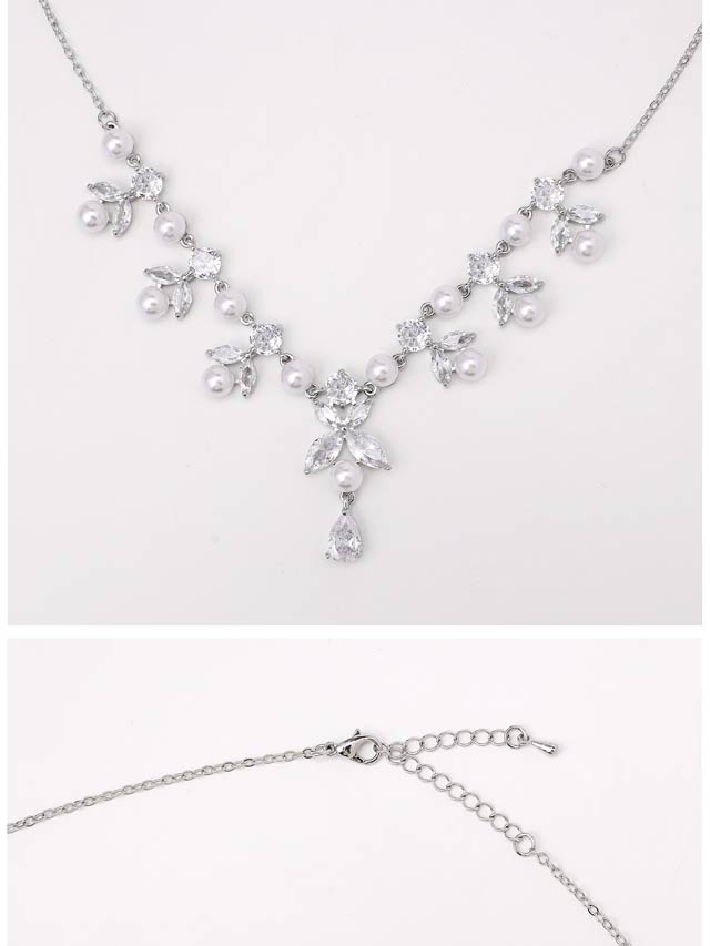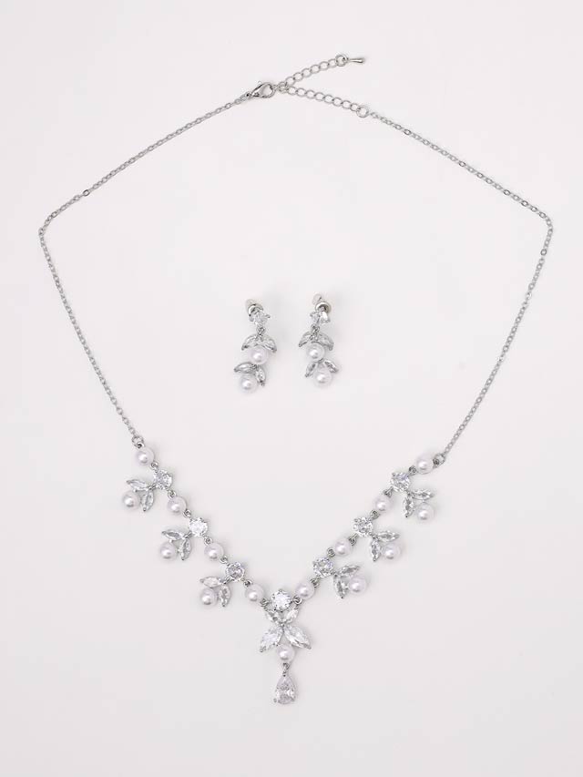 [2点SET]エレガントパールリーフビジューネックレス&ピアスセット
