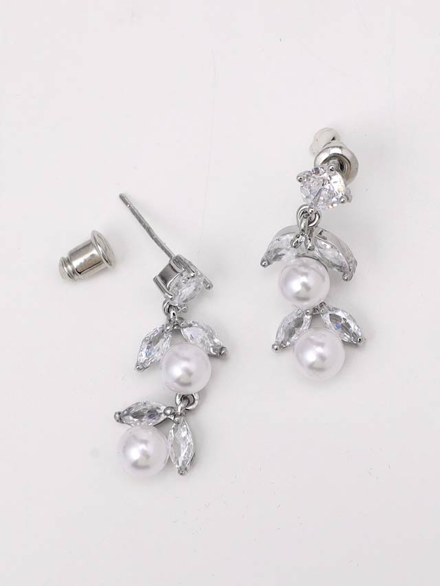 小ぶりな一粒パールとリーフビジューを組み合わせたネックレス&ピアスセット。シンプルかつ上品な印象で、どんなコーディネートにも合わせやすく使いやすいアイテムです♪