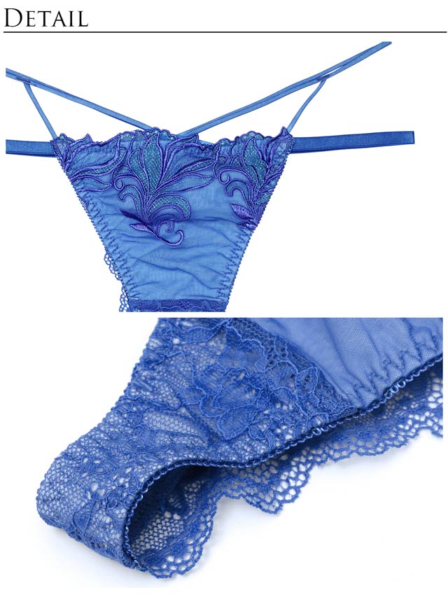 羽が舞うようなリーフモチーフの刺繍にきらめくラメを散りばめたラグジュアリーなランジェリー。腰まわりを飾るコード使いがセンシュアルな肌見せを演出します。華やかさと色気を兼ね備えた、大人の魅力引き立つ一着です。