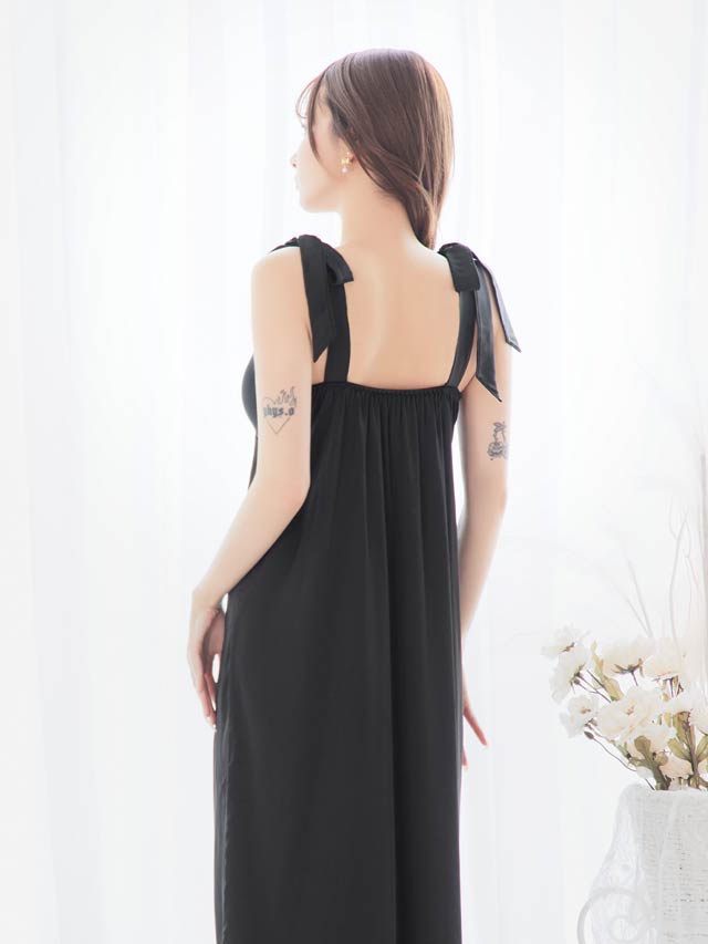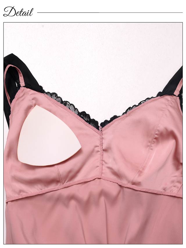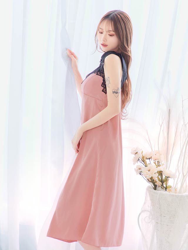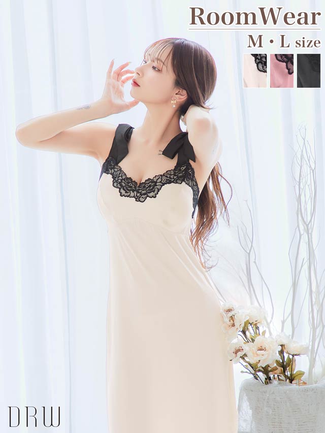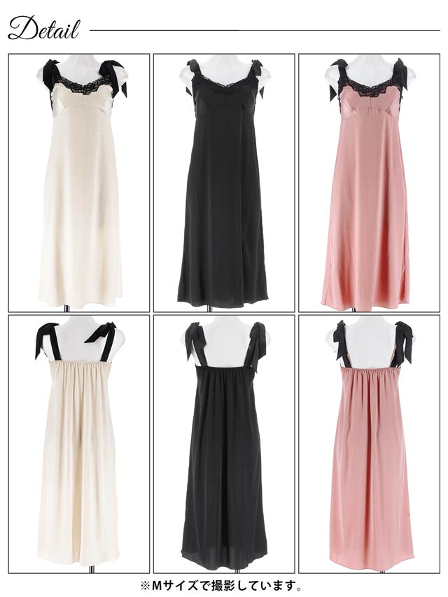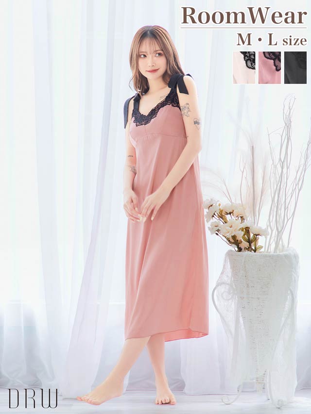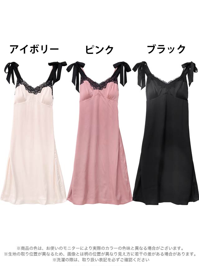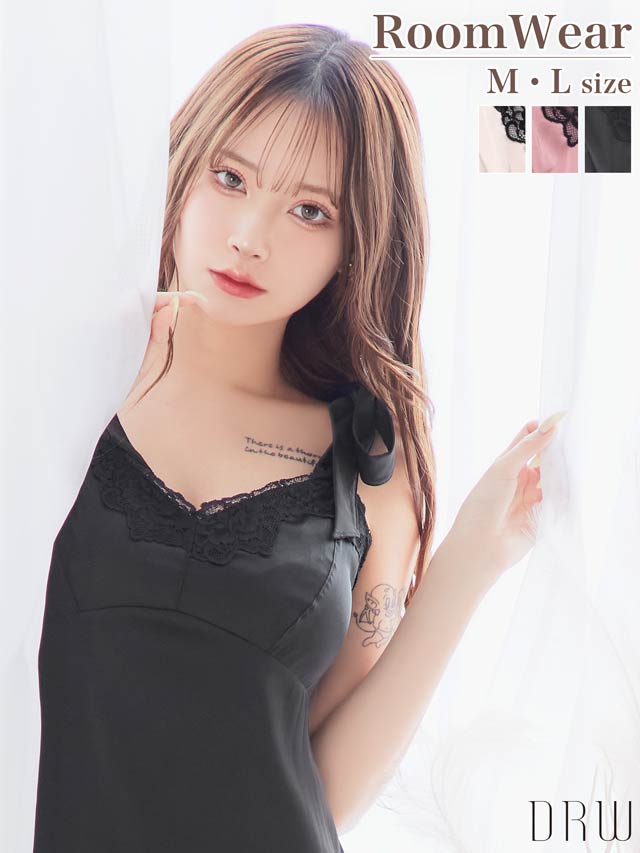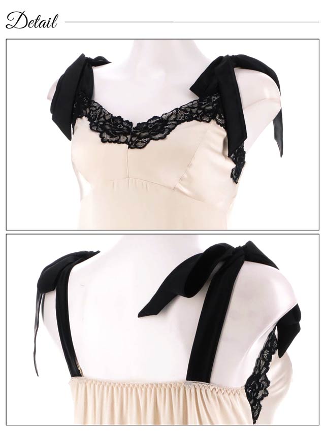 7/25新作!サテンレースショルダーリボンワンピースルームウェア