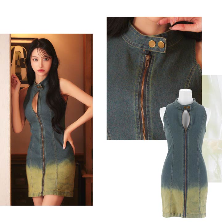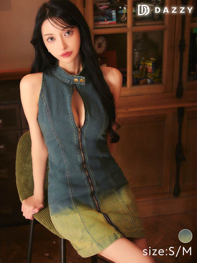 人気のフロントジップで目線を釘付け◎ カジュアルセクシーなデニムワンピースが登録♪ 気分に合わせてファスナーを閉じた着こなし方も楽しめるのがポイントです!グラデーションを効かせた配色は被りにくいデザイン性でこなれ感ばっちりな1着です。