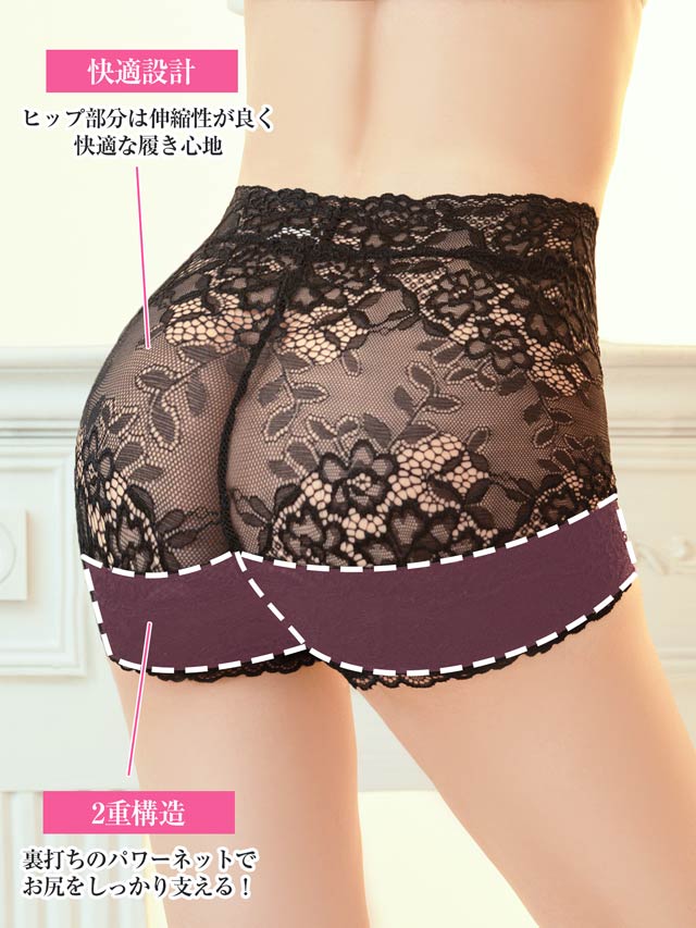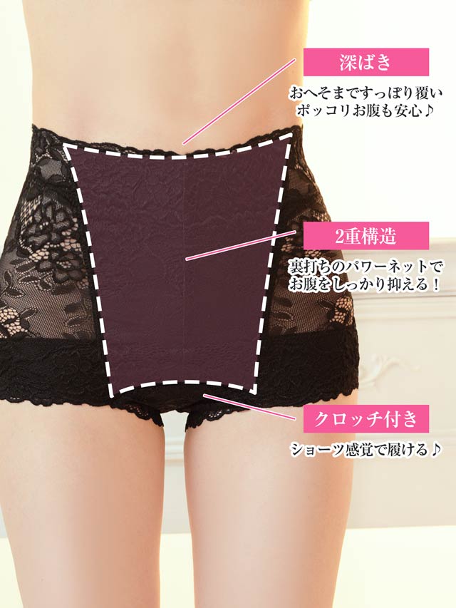 毎日履きたくなるような女性らしいオシャレな総レースガードル。深履きでしっかりお腹を抑えつつ、締め付け感ない快適な着心地を叶えます◎ ショーツラインが透けにくいのも嬉しいポイントです。