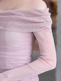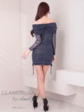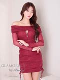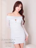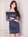 7/29再販![GLAMOROUS by Andy]シフォンラメギャザージップオフショルミニ丈キャバドレス[GMS-V863]