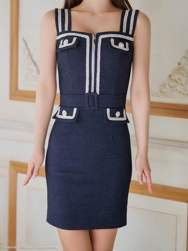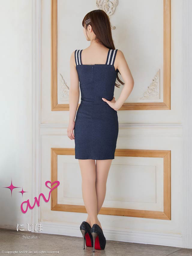 7/29再販!【ポイント20倍】[an]ノースリーブデニム風フロントジップパールボタンタイトミニ丈キャバドレス[AOC-3898]