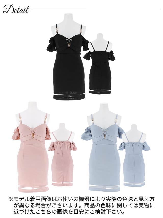 8/1新作!レースアップVカットビジューフリルオフショルタイトミニ丈キャバドレス[SML/3サイズ展開][伊藤桃々着用]
