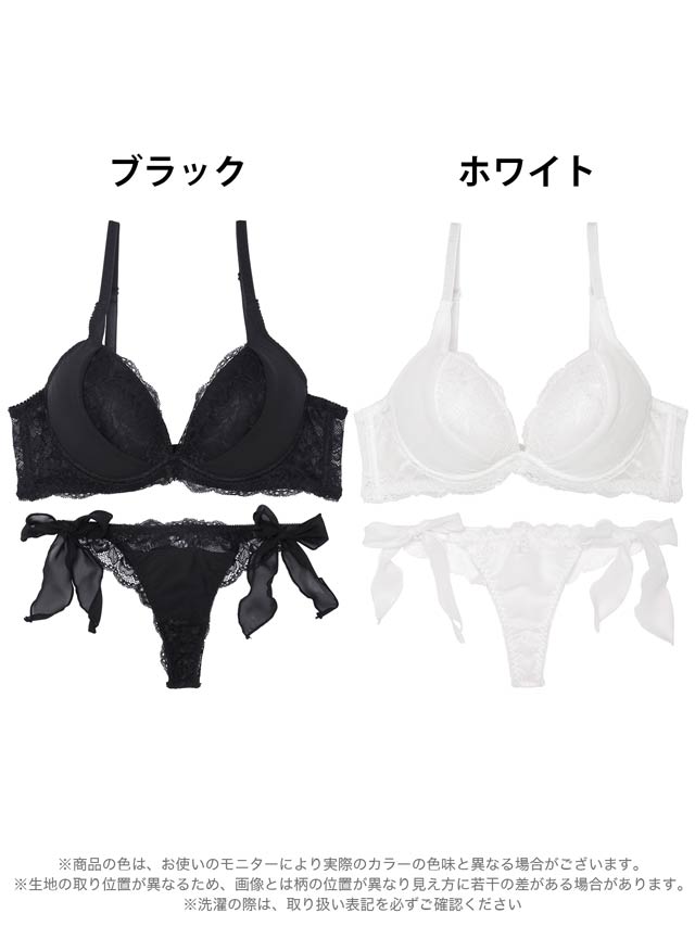 8/13再販!【Tバック】【かとゆり着用】モノトーンプティチュール育乳ブラジャー&サイド紐バック透けTバックショーツ[推し][人気]