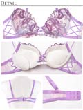 淡くグラデーションがかったカップに、エレガントなボタニカル刺繍を施したランジェリー。谷間やカップ脇には華奢なクロスコードをあしらい色気を演出。バックはシースルーデザインで素肌をさりげなく透け見せします。