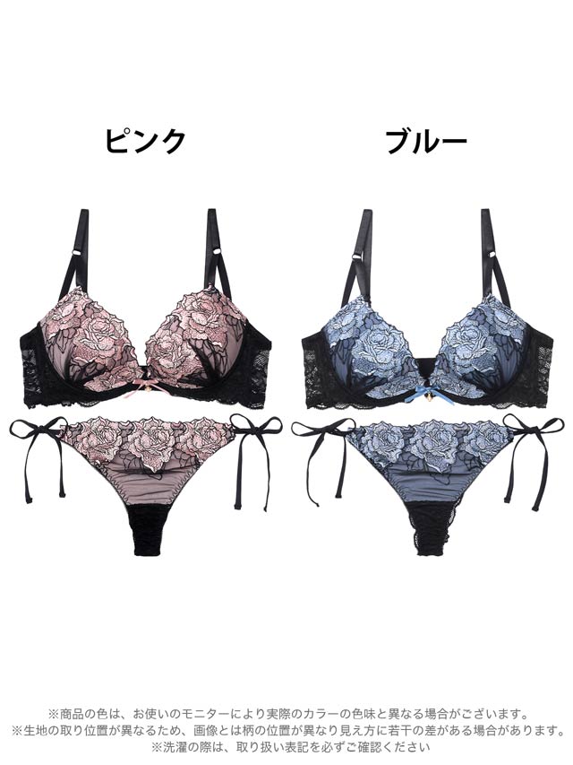 8/15新作!【Tバック】【三上悠亜着用】セレーナローズエンブロイダリー育乳脇高ブラジャー&サイド紐バック透けTバックショーツ[推し][人気]