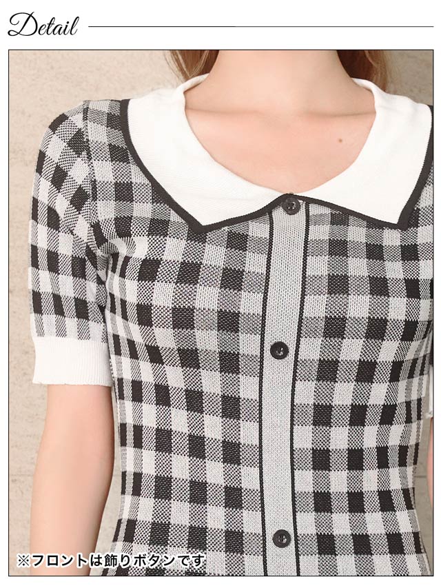 8/22新作!襟付きレトロギンガムチェック半袖ニットワンピース[カジュアル/dazzy closet]