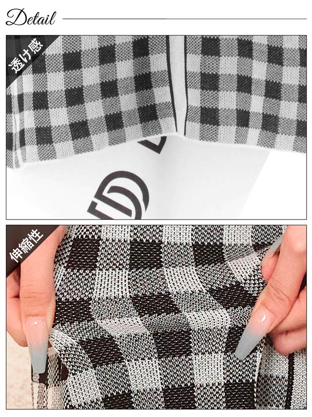 フロント切り替えのレトロなギンガムチェック柄が印象的なワンピース。襟元を加えた上品さが大人かわいいアクセントに◎ 伸縮性のあるニット素材で快適な着心地と美シルエットを叶えてくれる1着です。