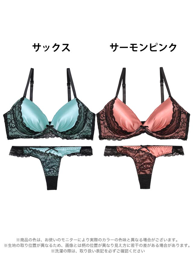 8/25新作!【Tバック】ノーブルサテンレース育乳脇高ブラジャー&バック透けTバックショーツ[推し][人気]