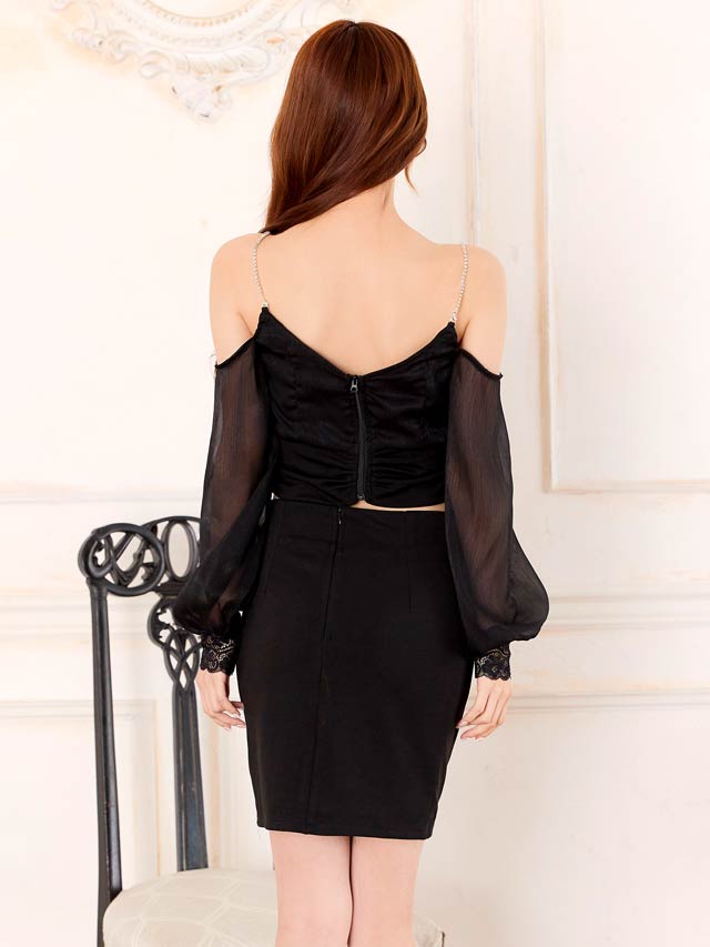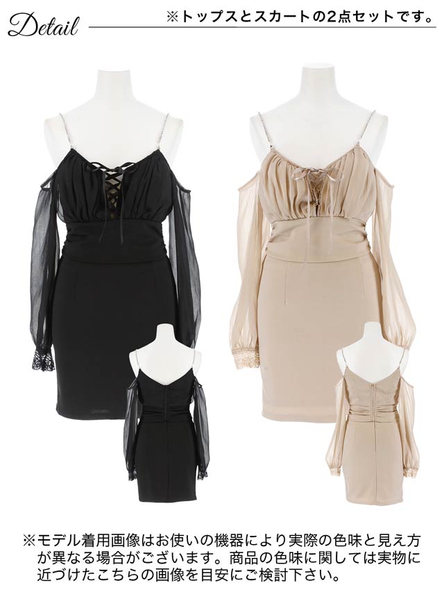 胸元で編み込まれたレースアップデザインが大人セクシーなミニドレス。透け感のあるオーガンジー素材が女性らしい柔らかい雰囲気を演出します◎ 華奢な肩魅せができる大胆なオフショルデザインも魅力的な1着です。