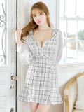 チェック柄×パールビジューでキレイめカジュアルな印象のマーメイドミニドレス。フロントジップ仕様で谷間の開き具合が調整可能です◎ シフォンスリーブでやわらかい印象を与えるとともに、二の腕カバーも出来る1着です。