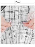 8/26再入荷! ツイードチェックパールビジューフロントジップ長袖マーメイドミニ丈キャバドレス[S~LL/4サイズ展開]