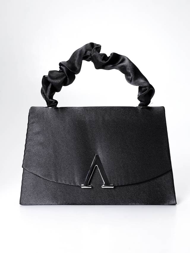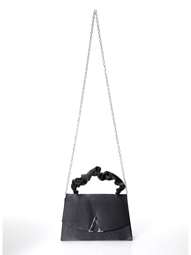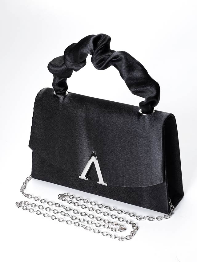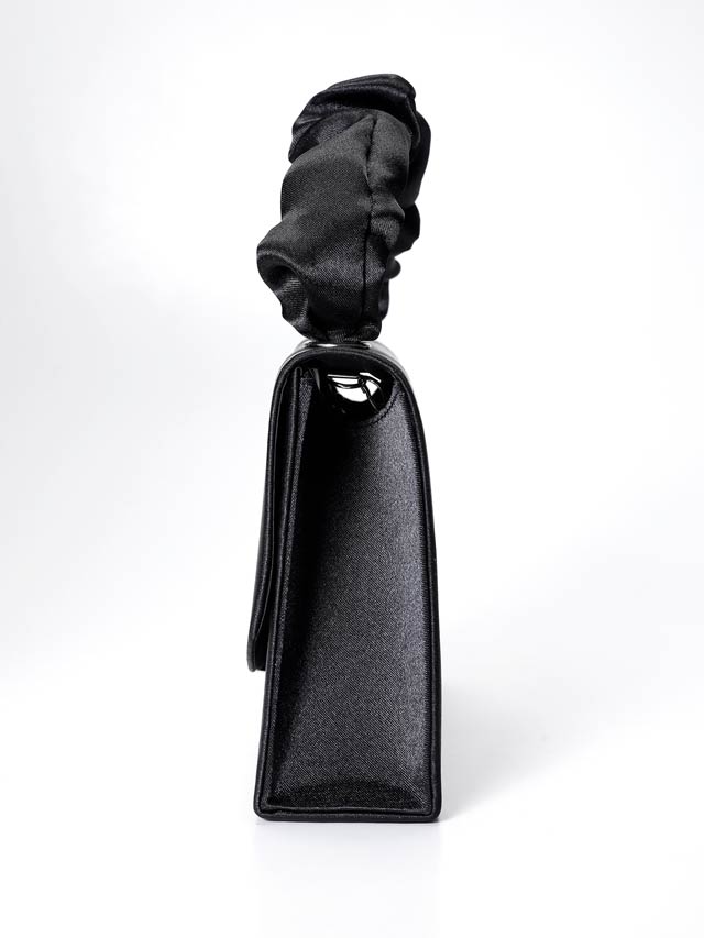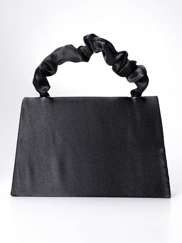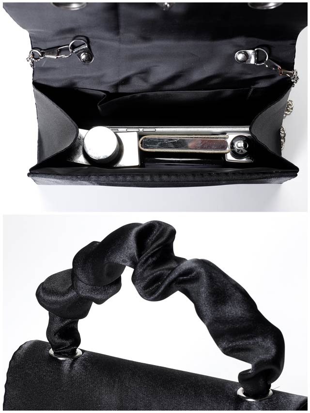 前面の煌びやかなVビジューが高級感を漂わせるハンドバッグ。くしゅっとギャザーを寄せた持ち手が大人かわいいアクセントに◎ 肩掛け用のチェーン付きなので2WAYでご使用頂けます!