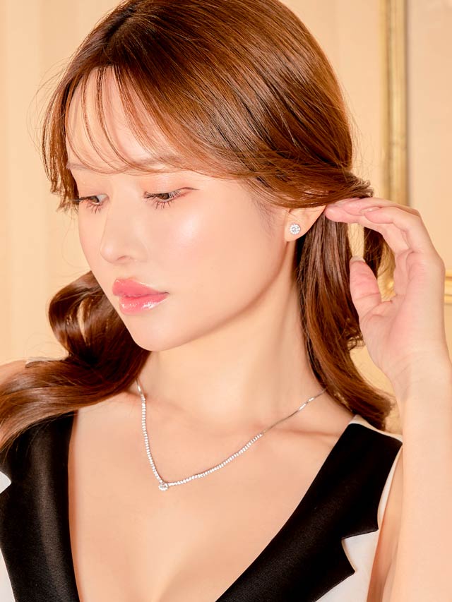 8/6新作![2点SET]エレガントシルバーストーンラインネックレス&ピアスセット