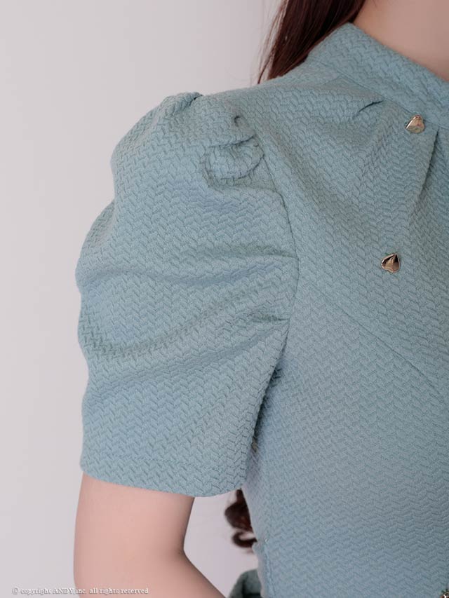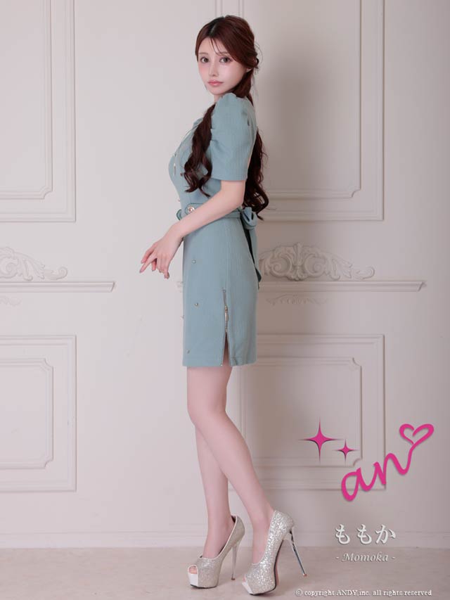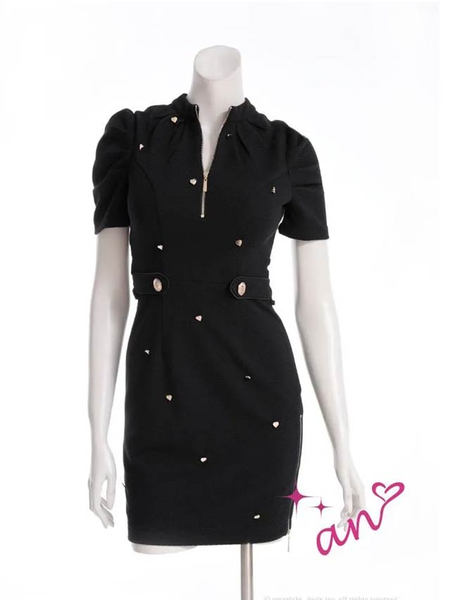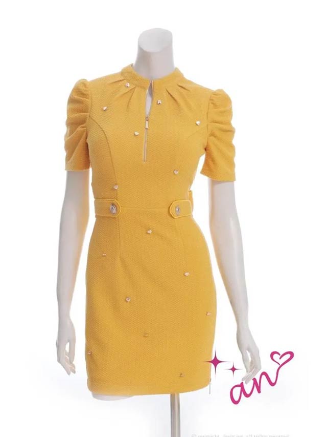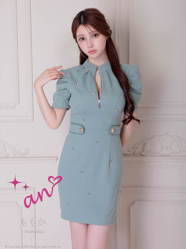 8/8新作![an]ハイネックジップハートビジューパフスリーブタイトミニドレス[AOC-3878 ]
