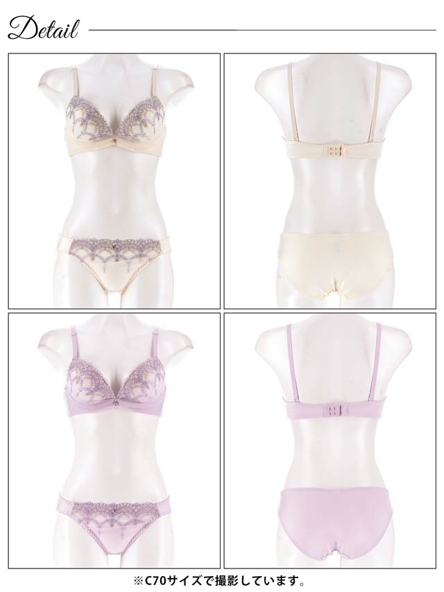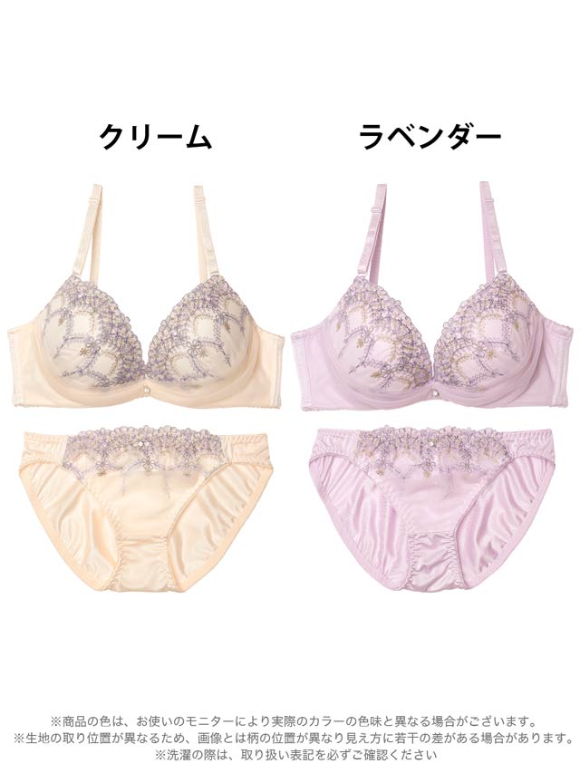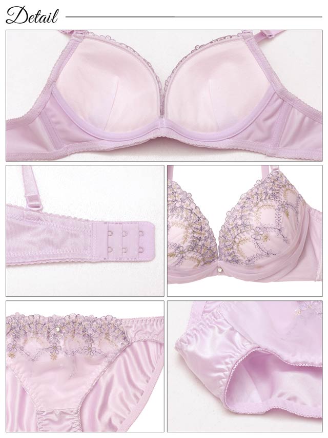 ラメがきらりと光る小花柄の刺繍を施した上品キュートなランジェリー。カップ下にあしらったチュールがふんわりと立体感を生み、柔らかなシルエットを演出します♪安心感のあるフルバックショーツセットで普段使いにもぴったりの1着です◎