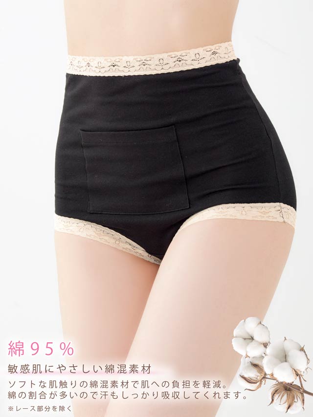 9/12新作!バイカラーレースポケット付き腹巻ショーツ