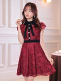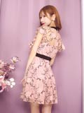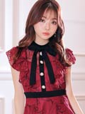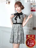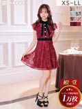 9/16再入荷! ネックリボンフラワー総レースフリルAラインミニ丈キャバドレス[XS~LL/5サイズ展開]