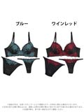 9/18再販!【3点セット】ディープローズエンブロイダリー育乳脇高ブラジャー&フルバックショーツ&Tバックショーツ[推し]