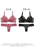 オールレースのローズ柄が上品なランジェリー。レースの上に重なったクロスコードと、リボン装飾が胸元に色気と華やかさをプラスします◎ 脇高仕様で谷間をしっかりキープしてくれる1着です♪