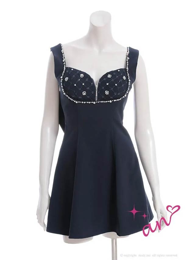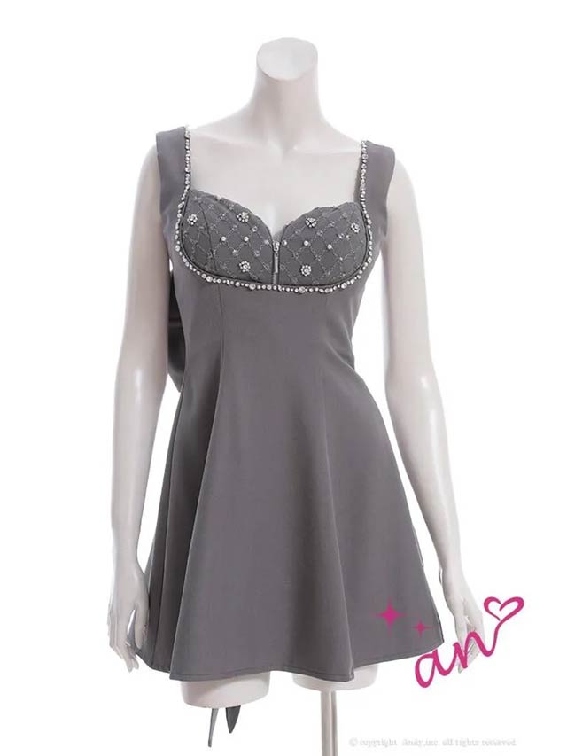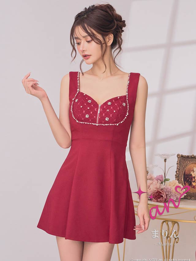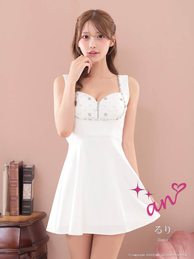 9/24新作![an]バッグドレープリボンファスナービジューAラインミニ丈キャバドレス[AOC-3969]