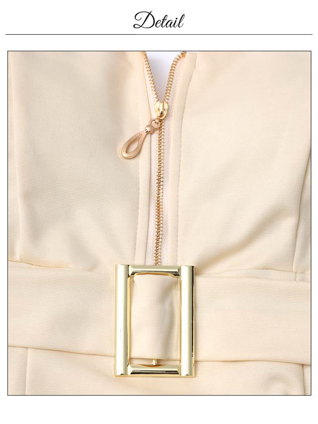 3/3再販!【新色クリーム追加】クロスホルタージップアップベルトモチーフタイトミニドレス[XS~L/4サイズ展開]