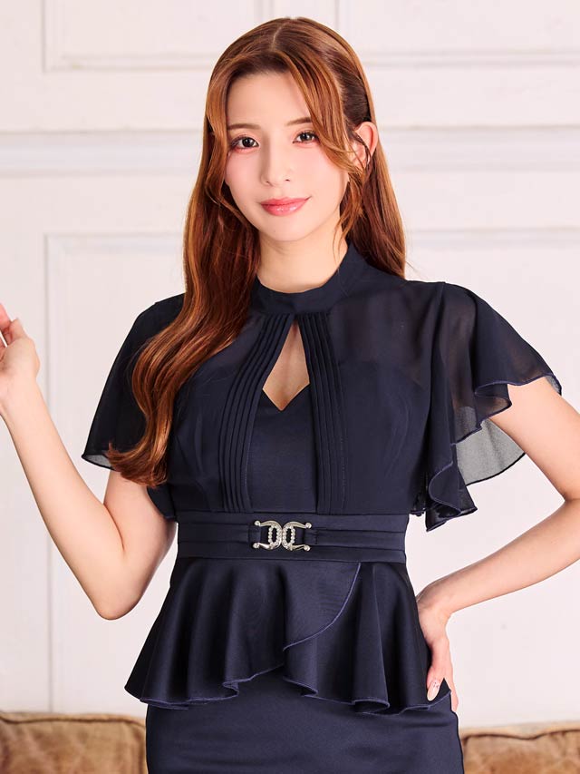 プリーツ加工をあしらったシフォンから覗く谷間魅せがセクシーなミニドレス。フリル感のあるペプラムシルエットで女性らしさとスタイルアップ効果を与えます♪気になるお腹や二の腕を隠せる嬉しいデザイン。ふんわりとしたフレア袖が高級感漂う1着です。