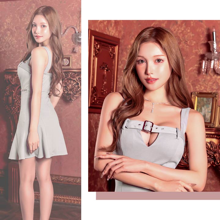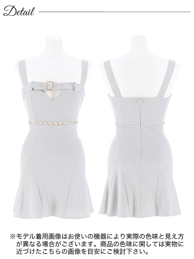 デコルテ部分に差し掛かるベルトラインがこなれ感漂うミニドレス。煌びやかなチェーンビジューをあしらい美シルエットを叶えます◎ 程よい谷間ホール、ふんわりしたAラインスカートが女性らしい印象をプラスする1着です♪