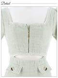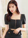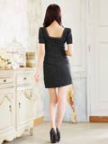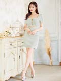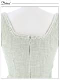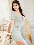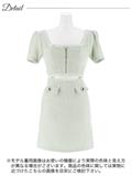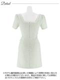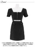 9/4再入荷! スクエアネックツイードビジューフロントジップウエストカット半袖タイトミニ丈キャバドレス[XS~L/4サイズ展開][伊藤桃々着用]