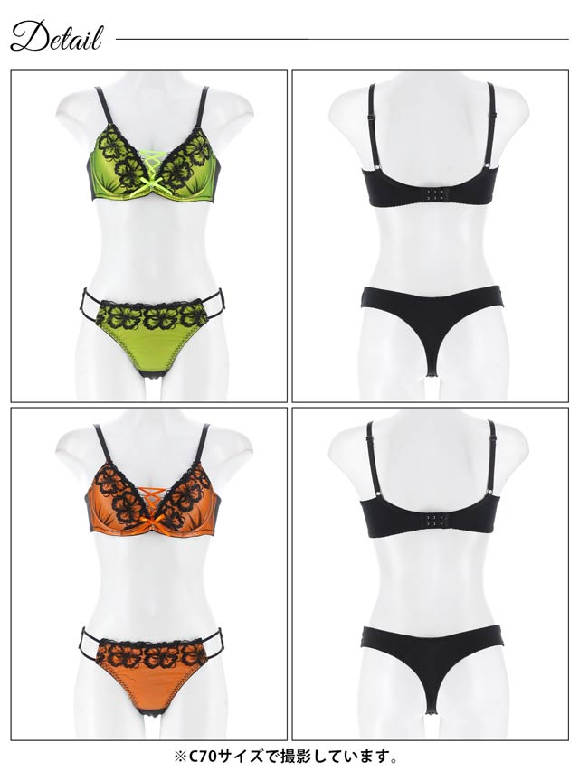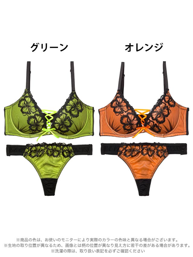 9/8新作!【EFサイズ】【Tバック】ネオンフラワースピンドル育乳ブラジャー&Tバックショーツ[推し]