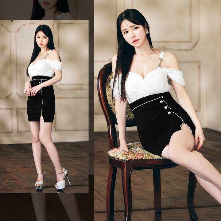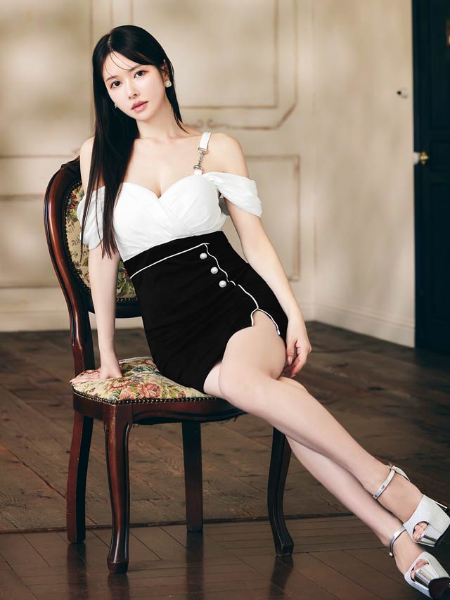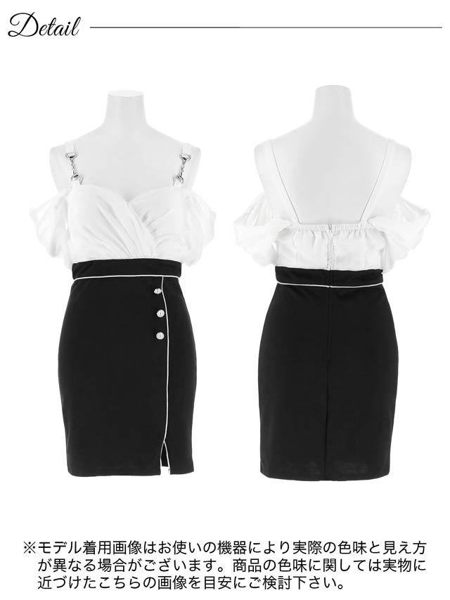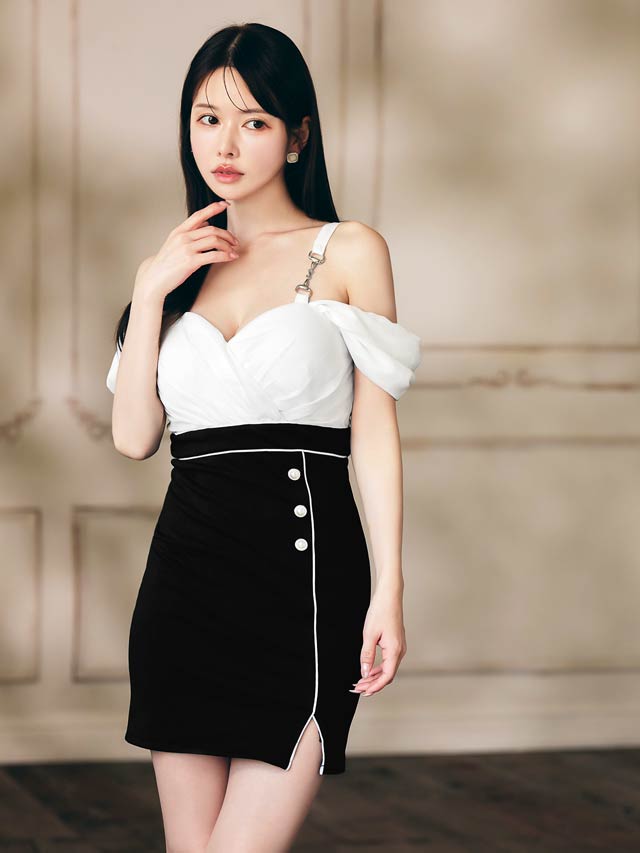 ふんわりとした大胆なオフショルデザインが大人セクシーなミニドレス。ふんわりとしたカシュクール切り替えが美しいバストラインを作り上げます◎ パイピング加工を施したスリットスカートで美脚魅せにもおすすめな1着です♪